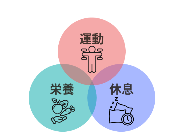 そこで、運動→休息→栄養、この3つのバランスがとても大切です。